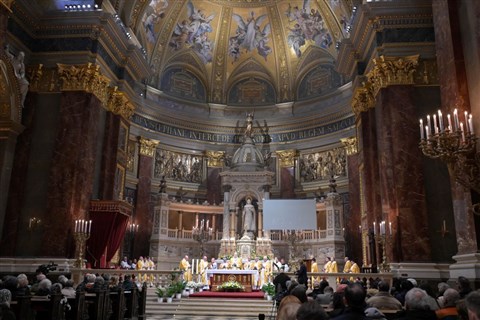 Kitért arra: a bazilika védőszentje Szent István király, aki az egész magyar nép pártfogója, és "különös kegyelem", hogy a templomban őrzik a Szent Jobbot.