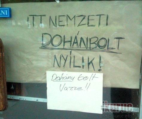 Olvasónk egy leendő kispesti dohányboltnál kapta lencsevégre az esetet. Szívesen elolvasnánk a nyertes pályázatot is...