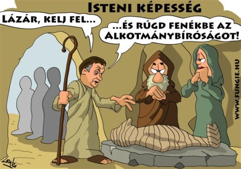 Megnyírbálja az Alkotmánybíróság jogköreit a kormány a Lázár János frakcióvezető által benyújtott alkotmánymódosítással, miután az alkotmányellenesnek nyilvánította a 98 százalékos különadóról szóló törvényt - írta Gomba nemrég blogjában karikatúrájának bevezetőjeként.