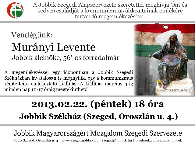 A kommunizmus áldozataira emlékeznek Szegeden és Rákóczifalván