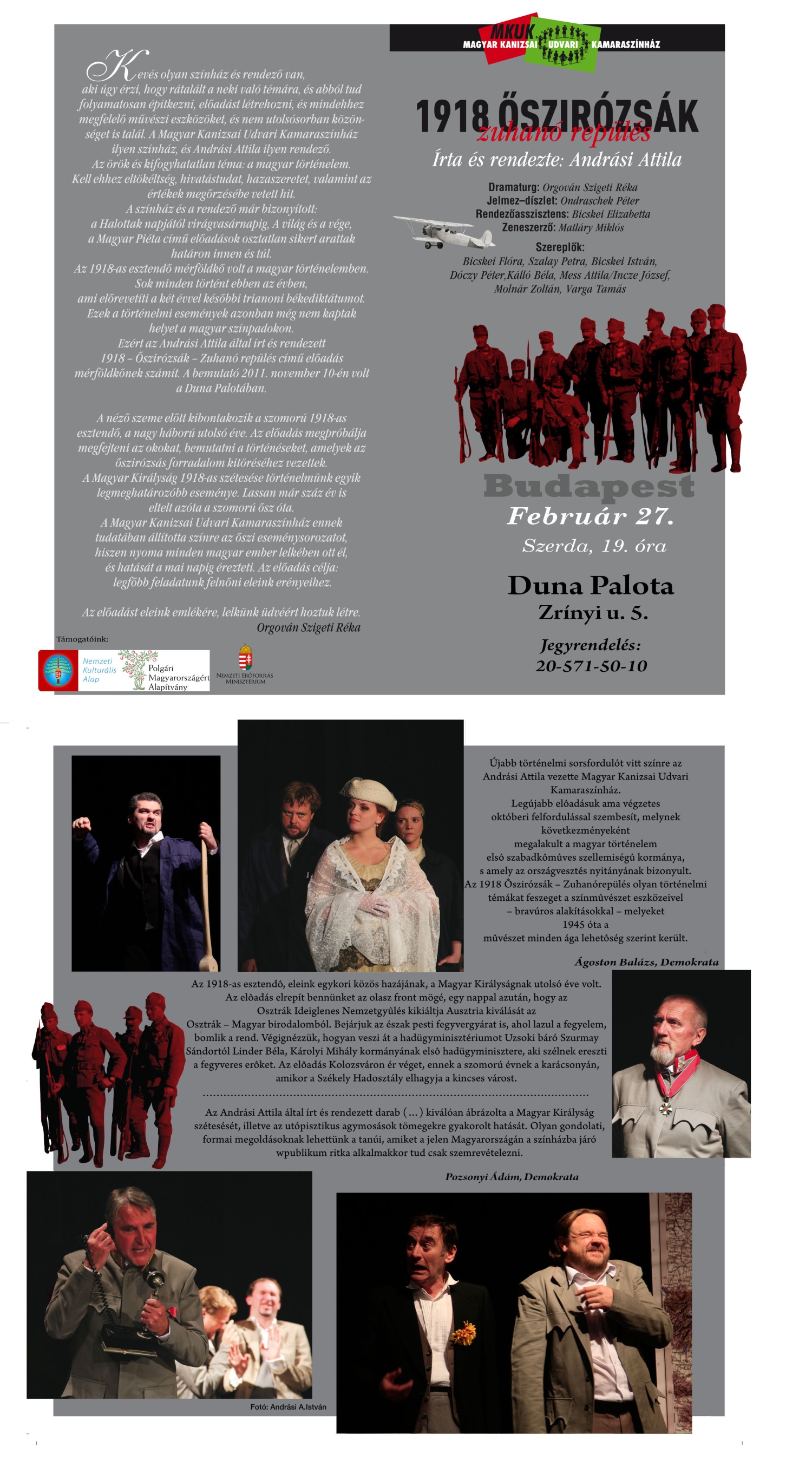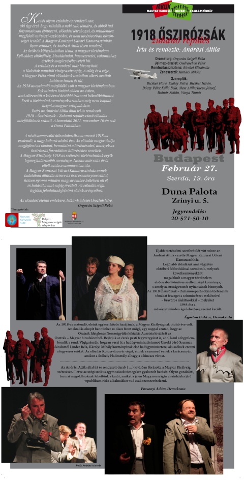 1918, őszirózsák - ismét Budapesten a Magyar Kanizsai Udvari Kamaraszínház előadása