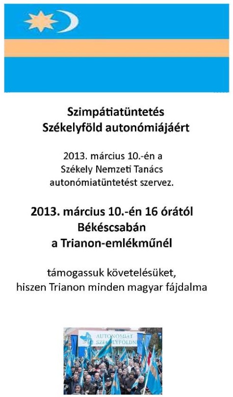 Szimpátiatüntetés Székelyföld autonómiájáért Békéscsabán
