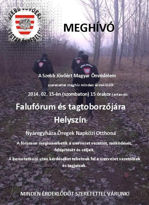 Most ezen a településen 2014. február 15-én (szombaton) 15 órától tartunk falufórummal egybekötött tagtoborzót. Helyszíne: Nyáregyháza, Öregek Napközi Otthona.