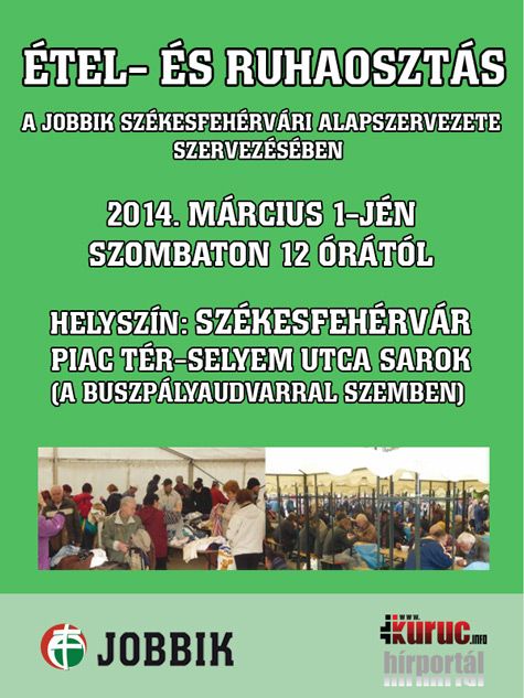 Étel- és ruhaosztást szervez a Jobbik ma déltől Székesfehérváron