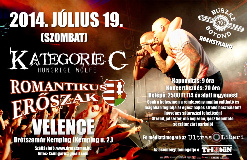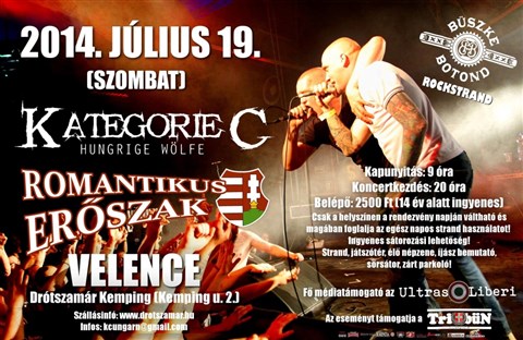 Már reggel 9 órától lehet csobbanni a tóban, és ingyenes sátrazási lehetőséggel, büfékkel, sörsátorral, kirakodóvásárral várják az érdeklődőket, a gyerekek pedig a strand mellett a játszóteret is birtokba vehetik napközben. Este 8-tól aztán a rendezvénysátorban feldübörögnek a hangfalak. A novemberben új lemezzel jelentkező RomEr nagykoncertje után jönnek a német futballrockerek, azaz a méltán híres-hírhedt a Kategorie C csap a húrok közé.