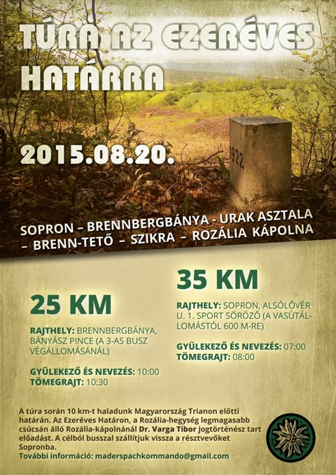 Augusztus 20-án, Szent István királyunk ünnepén a Jobbik Soproni Szervezetének támogatásával a „Maderspach Természetjáró Kommandó” ismét vezetett gyalogtúrát szervez Sopronból, a hűség városából az ezeréves határon álló Rozália-kápolnához.