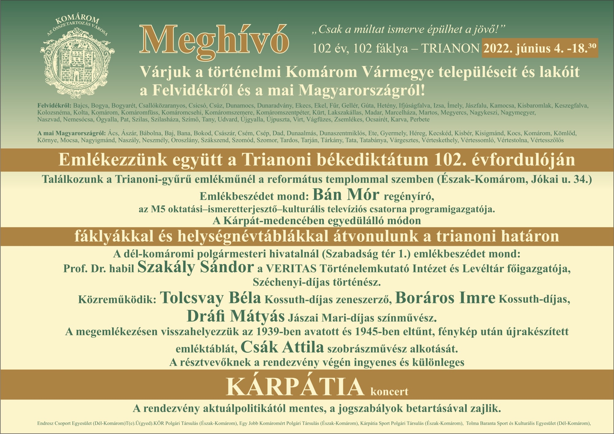 Észak- és Dél-Komárom közösen, neves előadókkal és a Kárpátia zenekarral emlékezik június 4-én