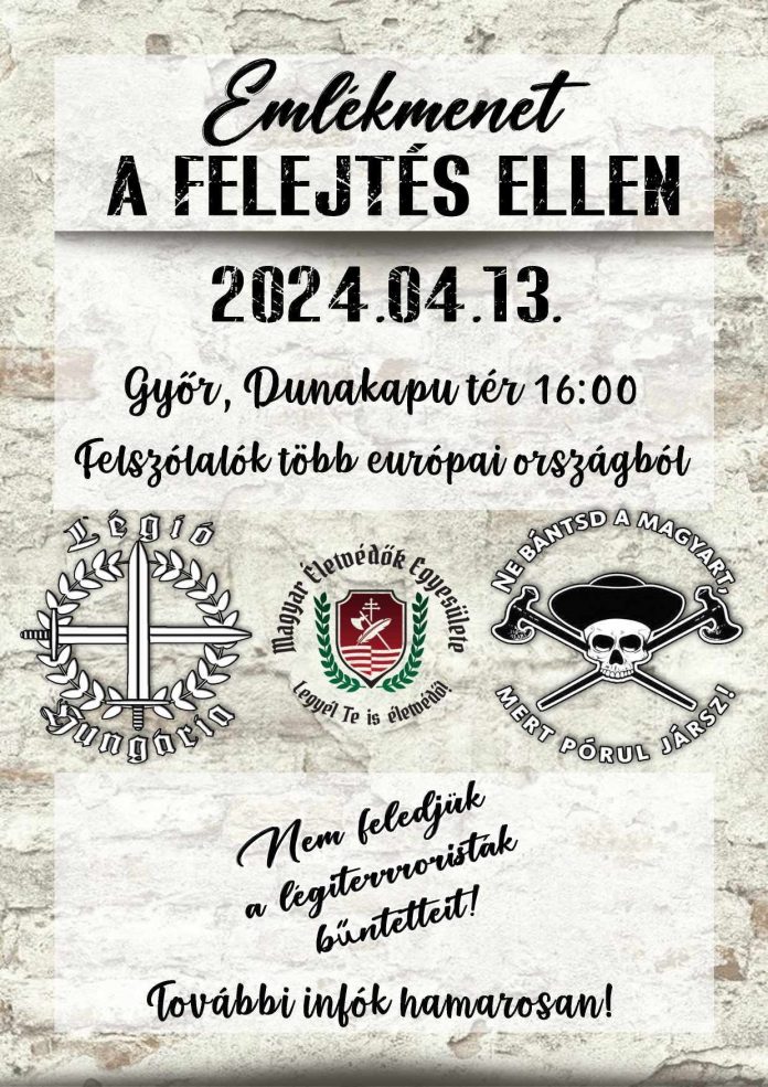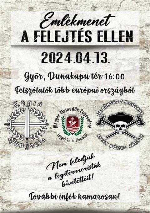 A hazafias csoportok megemlékezésére 2024. április 13-án, 16:00 órától kerül sor Győrben, a Dunakapu téren.