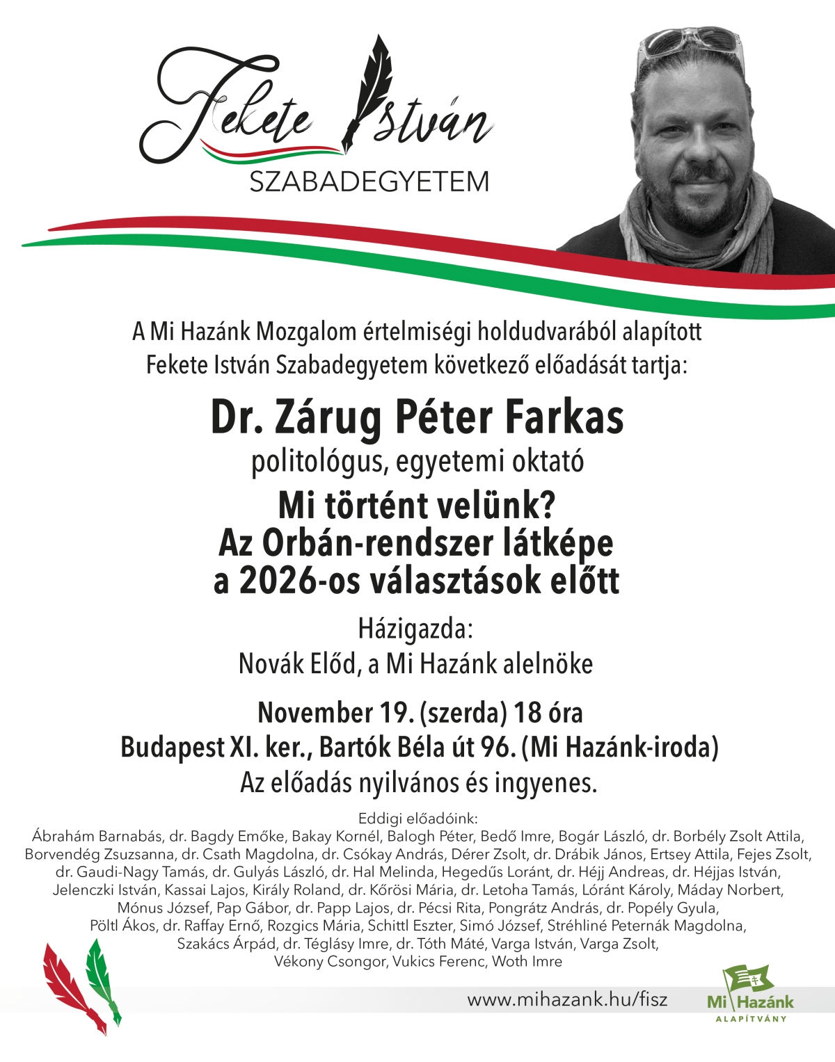 Időpontváltozás: az egyetemi oktató felsőoktatási feladatai miatt végül november 19-én, szerdán lesz ez az előadás.