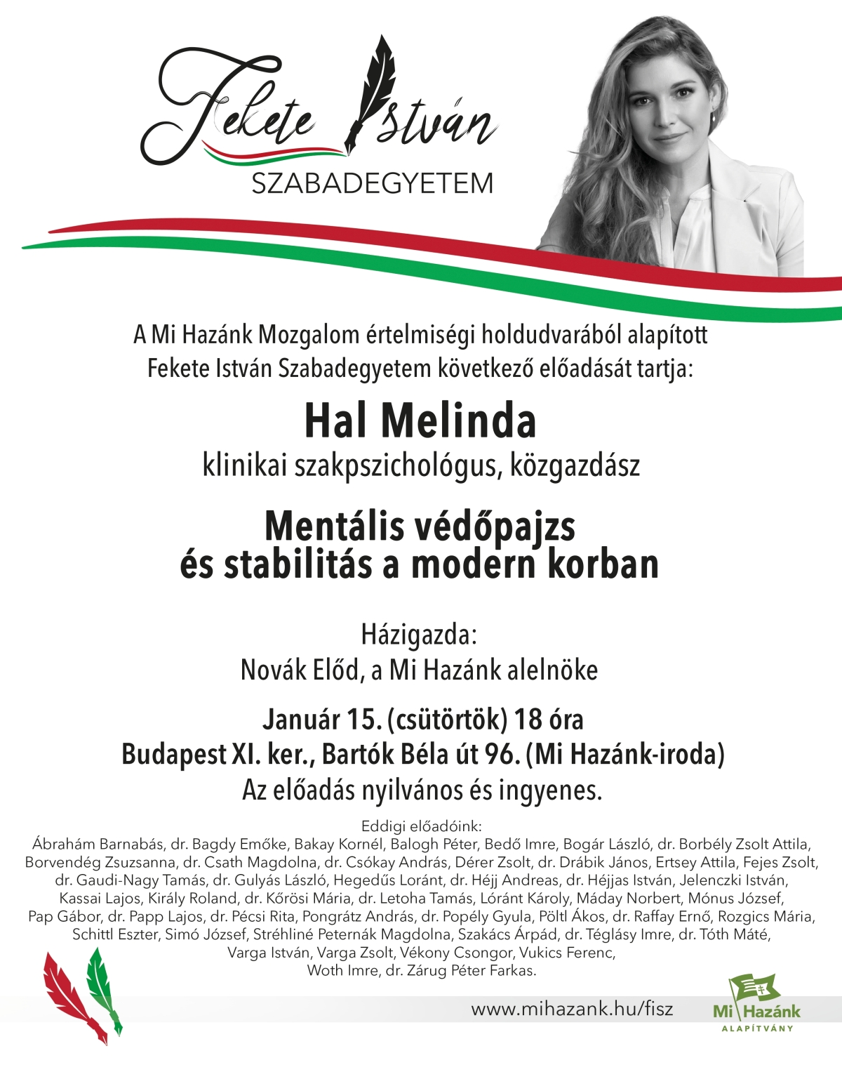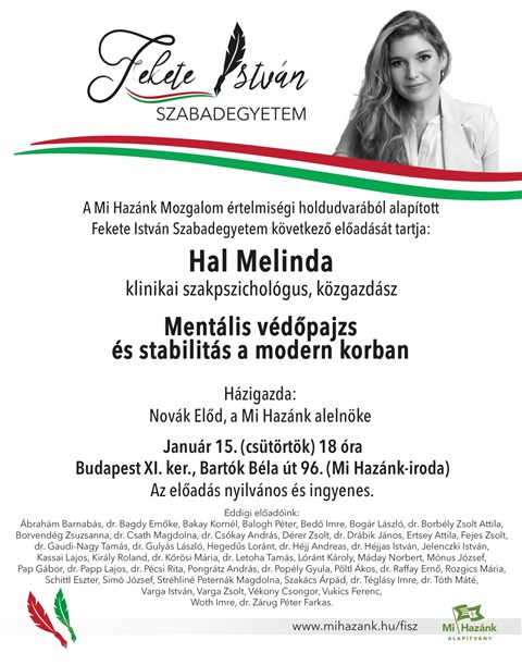 Mentális védőpajzs és stabilitás a modern korban - Hal Melinda pszichológus a Fekete István Szabadegyetemen