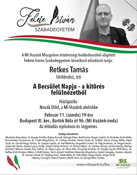 Hiánypótló előadás a kitörésről a Fekete István Szabadegyetemen február