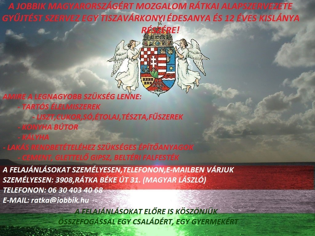 Egy édesanya és 12 éves kislánya részére gyűjt a rátkai Jobbik