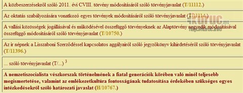Arra már eddig is több példa volt, hogy a napirendi javaslat közzétételekor még nem volt benyújtva a néhány nap múlva tárgyalandó előterjesztés. Csak a címét közölték, és aztán röviddel az ülés kezdete előtt lehetett megtudni, miről van szó valójában. Az azonban még nem fordult elő, hogy címe sincs a megtárgyalni kívánt tervezetnek, tehát egyáltalán nem lehet tudni, miről akar javasolni valamit a kormány vagy valamelyik kormánypárti képviselő.
