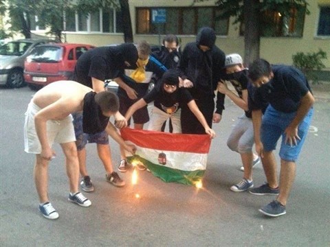 Magyar zászlót gyalázó román fiatalok és egy üzenet, amit nekünk küldtek: "Bagamiaș pula în mata, bozgor de cacat" - írja az egyesület.
