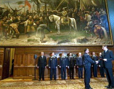 A csalással hatalomra került miniszterelnök szerint a március 15-i ünnep "békésebb, nyugodtabb" volt idén, mint az előző években, ennek oka főleg közéleti és politikai természetű (értsd: a Fidesz már véletlenül sem beszél kormányváltásról), illetve annak köszönhető, hogy a rendőrség megtanulta a leckéjét (mely a következő: ne sajnáld a magyart - tehette volna hozzá) - erről Gyurcsány Ferenc annak kapcsán beszélt, hogy a Parlamentben 15 pribéket elismerő oklevélben részesített a nemzeti ünnepen végzett "munkájukért."