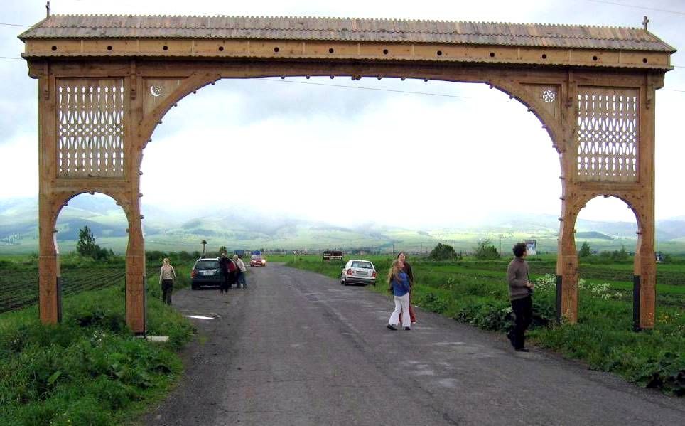 ![]() Csíkszentgyörgy határában hatalmas székelykapu fogadja a Csíkbánfalva felől érkezőt (Fotó: Geolocation) |