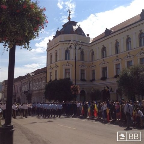 Egy évvel ezelőtt kisebb botrány robbant ki, amikor a felújításra hivatkozva a városvezetés nem engedte, hogy a zászlót kitegyék. Csütörtökön kora reggel az már ott lengedezett a villámhárítóként is működő, az eredeti terv alapján készült csúcsdísz tövében. A parádéra összegyűltek a bámészkodók, a magyarok közül sokan azt hitték, hogy Mária napját ünneplik ekkora felhajtással az oláhok.