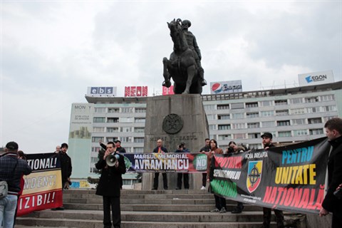 ![]() A magyar polgármesterek nacionalizmusától rettegnek, de az rendben volt, amikor komplexusos sovének egészen véleltenül 2015. március 15-én ünnepelték a Avram Iancut Kolozsváron (fotó: Transindex) |
