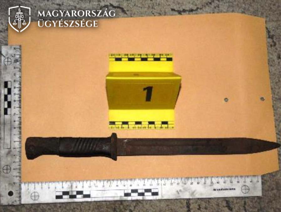 Miután a rendőrök az ajtót testi erővel benyomva bejutottak a szobába, a férfi egy 40 centiméter teljes hosszúságú, 25 centiméter pengehosszúságú bajonettel a rendőr nyaka felé szúrt, amely elől az őrnagy ki tudott térni. Ezután az elkövető a bajonettet meglendítve a rendőr mellkasa irányába szúrt, de a rendőrök ezt a támadást is hárítani tudták, úgy, hogy – ráfogva a férfi kezére és a bajonettre – annak hegye a rendőr őrnagy mellkasától néhány centiméterre állt meg.