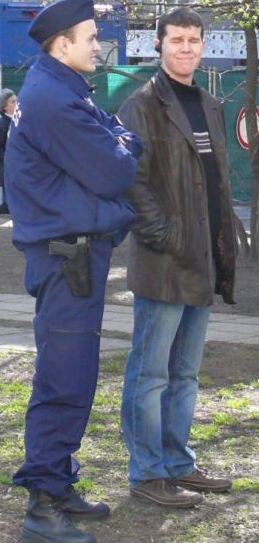 Újabb olvasónk érezte úgy, hogy enyhén szólva egyoldalú és igazságtalan, hogy míg az ÁVH honlapján mutogatja a hazafiak fényképeit, vérdíjat tűzve ki a fejükre, addig az igazi ellenség, a rezsim vezető garnitúrája továbbra sincs bíróság előtt, csicskáik is tovább rejtőzködhetnek. Küldött is rögvest két fényképet két rendőrspicliről. Mivel biztosra akartunk menni, utánanéztünk az archívumunkban, és, mit ad Isten, egy 2007-es képen egyikük éppen igazolja magát. Az alábbi képek részben tavaly készültek, de aktuálisak lehetnek ma is. Aki felismeri a dikatúrát védelmező, a nemzeti ünnepet szükségállapottal megszentségtelenítő spionokat és adatokkal tud szolgálni nevükről, címükről, ne habozzon, írja meg a szerk@kuruc.info -ra, bizonyítékokkal.