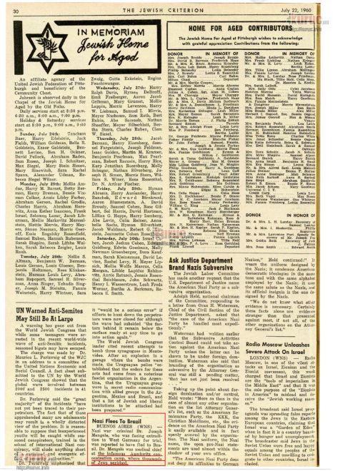Időnként a zsidókkal is előfordul, hogy Freud áldozataivá válnak, és véletlenül igazat írnak vagy mondanak, azaz elszólják magukat. Még akár holokauszt-témában is. Ugyancsak ez történhetett akkor, amikor az amerikai "The Jewish Criterion" c. zsidó hetilap 1960. július 22-i számának 30. oldalán leközölt egy Mengelével kapcsolatos nyúlfarknyi kis hírt, beismerve az igazságot Auschwitzról.