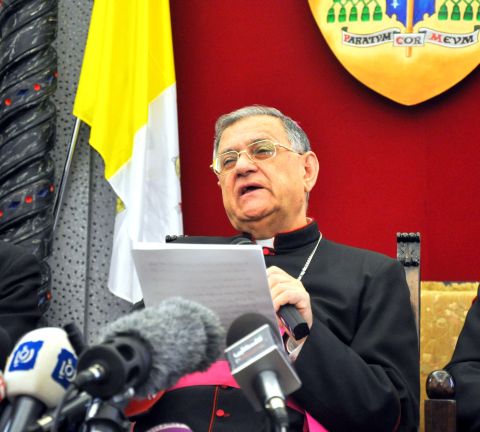 ![]() Fuád Tvál pátriárka haifai sajtótájékoztatója vasárnap |