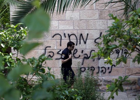 Az elmúlt hét végén közben több újabb keresztényellenes zsidó gyűlöletcselekedetekre került sor. A jeruzsálemi óváros Új Kapujával szemben álló Notre Dame Jeruzsálem Központ nevű épületegyüttes falára héberül fölírták: "Halál az arabokra, a keresztényekre és Izrael minden gyűlölőjére!". Jeruzsálem óvárosában egy keresztény templom közelében álló falon pedig a következő üzenetet hagyták a kiválasztottak: "Árcédula. Dávid, a zsidók királya. Jézus trágya."