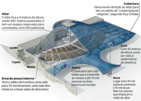 A templomkomplexum Ruy Ohtake építész tervei alapján készült, belsejében jelenleg 20 ezren imádkozhatnak egyszerre. Az épület tetején egy 44 méter magas kereszt áll.