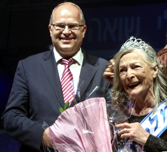 Jürgen Bühler a "Holokauszt-túlélők szépségkirálynőjével, Sosánná Kolmárral 2013-ban |