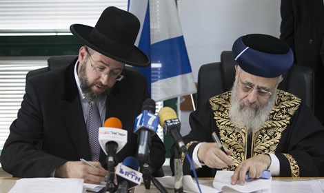 Dávid Lau askenázi és Jichák Joszéf szefárd országos főrabbi |