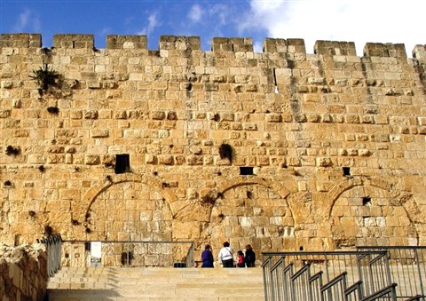 A jeruzsálemi Templom-hegy déli támfalában levő hármas Hulda-kapu |