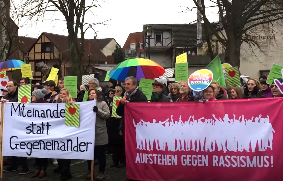 A polgármester is megjelent a vasárnap délutáni tüntetésen, s mit ad Isten, nem az általa vezetett település gyermekeinek, asszonyainak biztonságát követelő mintegy 1500 tüntető, hanem a velük szemben fölsorakozó, mindössze 100-120, Kandel városka „sokszínűségét” követelő génhulladék „antifa” között vegyült el. A magát „dél-pfalzi antifáknak” nevező söpredék hangos ellentüntetésre hívta a hasonszőrűeket, hogy követeljék az „emberséget, demokráciát, szolidaritást” (na nem a meggyilkolt lány szüleivel, hanem a sáskákkal – H. J.), s tiltakozzanak „az uszítás és a gyűlölet” ellen. Az „antifák” aztán a gyermekeik védelmét a hatóságoktól követelők felszólalásai idején is mindvégig üvöltöttek, náciztak, trombitáltak.