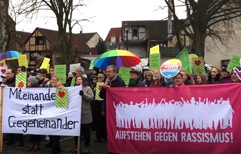 A tüntetőkhöz beszédet intézett Christina Baum, a bevándorlást ellenző Alternatíva Németországnak (AfD) nevű, a legutóbbi Bundestag-választásokon jól szerepelt párt Baden-Württemberg tartománybeli parlamenti képviselője, a párt baden-württembergi helyettes elnöke: „Ha Merkel nem árasztja el hazánkat ’képzett szakemberekkel’, akkor még ma is élhetne mindegyik meggyilkolt áldozat.”