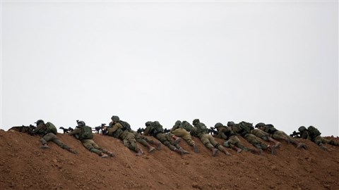 ![]() Izraeli katonák palesztin tüntetőkre lőnek a Gázai övezetet Izraeltől elválasztó határkerítésnél, Bét Hanún izraeli város közelében 2018. március 30-án (MTI/EPA/Atef Szafadi) |