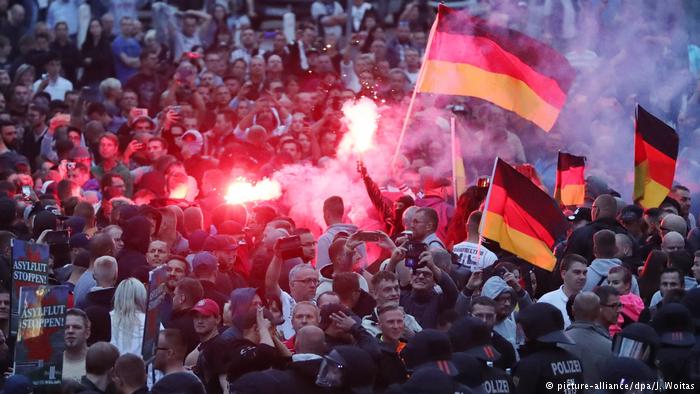 Vasárnap délután egy nagyjából 800 fős csoport felvonulást tartott Chemnitz központjában. A megmozdulást nem jelentették be, a rendőrséggel nem működtek együtt.