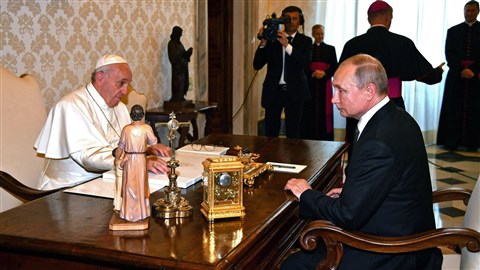 Nem megerősített sajtóértesülések szerint a tolmácsokkal tartott négyszemközti találkozón a katolikus egyházfő és az orosz elnök többek között a világ különböző részein zajló keresztényüldözésről, migrációról, Ukrajna és Venezuela helyzetéről beszélt egymással.