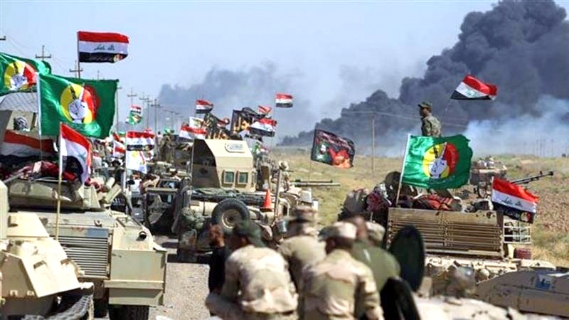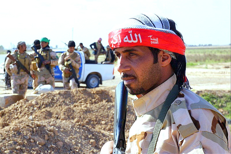![]() A Népi Mozgósítás fegyveresei a július 19-i légitámadás célpontjának közelében (fotó: parstoday.com) |