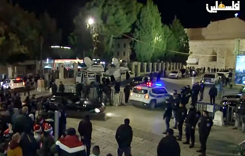 Pierbattista Pizzaballa jeruzsálemi latin pátriárka az óvárosi Jaffai kapun (a muszlimoknak: Hebroni kapu) kilépve az idei szentestén is díszes kísérettel vonult át a Jeruzsálemből Betlehem városába. Betlehem városából és a Palesztin Nemzeti Hatóság más településeiről meg lehetett közelíteni az éjféli mise színhelyét, az eredeti Születés Temploma mellett a XIX. század végén épült Alexandriai Szent Katalin-plébániatemplomot. De a külföldi zarándokokat a vírushelyzetre való hivatkozással Izrael nem engedte beutazni a területén keresztül a megszállt Betlehem városába – írja WAFA Palesztin Hírügynökség és a proiqra.com hírportál.