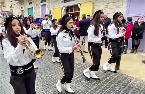 A délutáni órákban palesztin cserkészek – lányok és fiúk egyaránt - dudaszóval, dobpergéssel és fúvós muzsikával köszöntötték az éjféli misére készülődőket, s vonultak át a szűk betlehemi sikátorokban, míg végül elérkeztek a Születés Temploma előtti Jászol térre. A hivatalába tavaly beiktatott olasz Pierbattista Pizzaballa, jeruzsálemi latin pátriárka az éjféli mise keretében elmondott homíliájában – akárcsak egy évvel ezelőtt – egyértelmű politikai állásfoglalást is megfogalmazott a palesztin nép jogainak helyreállításával és a megszállt területek kiürítésével kapcsolatosan. Más szóval, fölszólította Izraelt, hogy vonuljon ki a megszállt területekről, s hagyjon föl a palesztin nép elnyomásával.