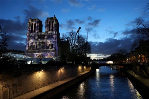![]() Fényshow-próba a Notre Dame homlokzatán az újranyitási ünnepség előtt 2024. december 6-án (fotó: Reutrers/Kevin Coombs) |