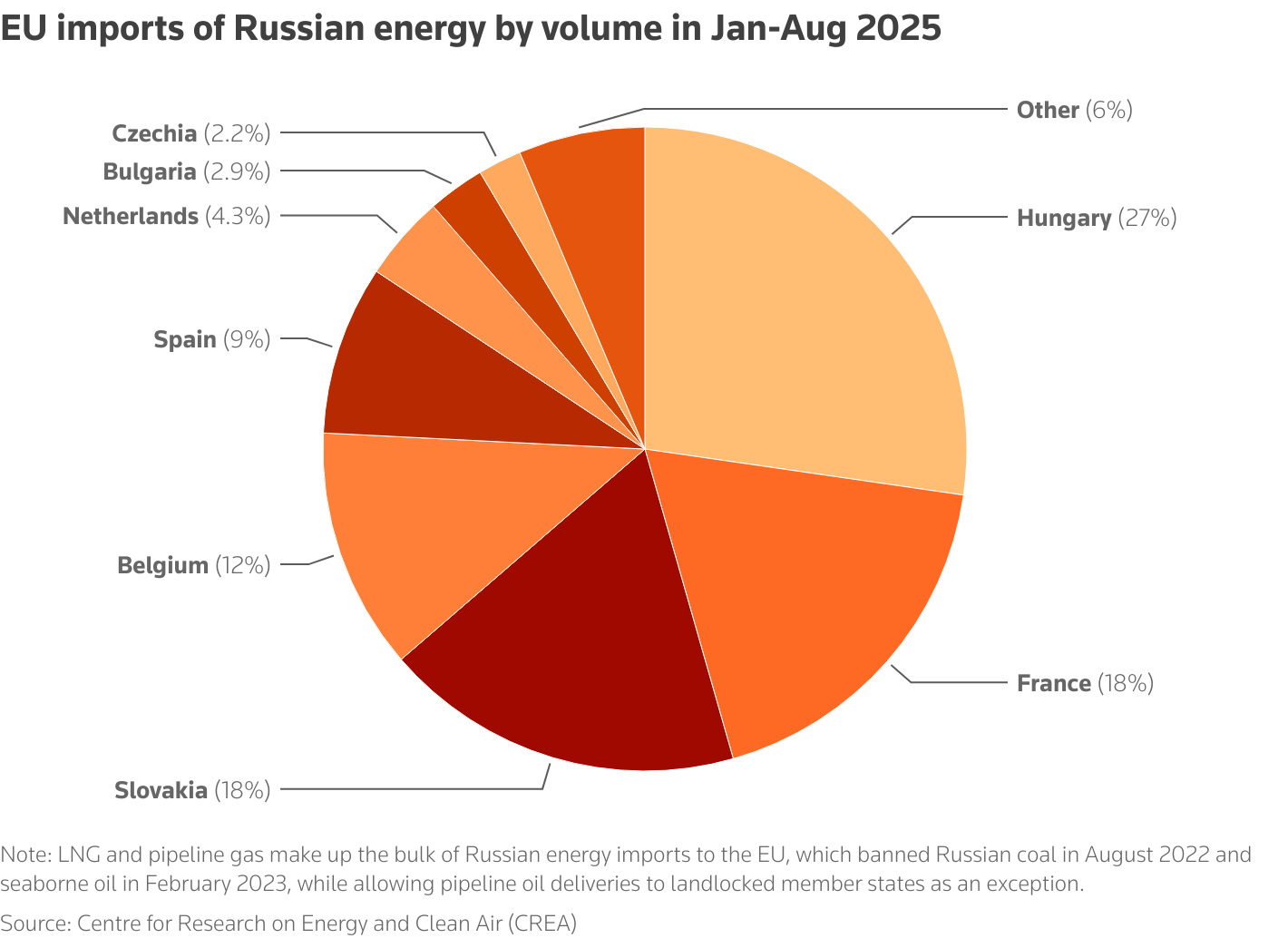 Franciaország 40 százalékkal, Hollandia 72, Románia 57, Horvátország 55, Portugália pedig 167 százalékkal emelte drasztikus mértékben a földgázalapú orosz energiaimportját 2025-ben. A francia kormány azzal védekezik, hogy az LNG- (cseppfolyósított földgáz) szállítmányokat más országoknak, például Németországnak továbbítják.