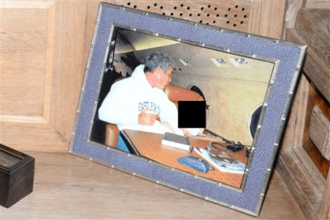 Az Igazságügyi Minisztérium által közzétett felvételek a hírhedtté vált Little St. James-szigeten található Epstein-birtokon készültek – írja a New York Post nyomán az Index. A fotókat bekeretezve, egy faragott könyvespolcon helyezték el a villában.