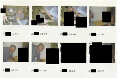 Az egyik képen Epstein köntösben, csukott szemmel, láthatóan elégedetten ölel egy kislányt. Egy másik felvételen a magángépén ül széles mosollyal, miközben átkarolja a mellette ülő, kék pulóvert viselő gyereket. A harmadik fotón Epstein egyenesen a kamerába néz, miközben egy vörös hajú, copfos kislányt puszilgat. Az egyik falon egy olyan kép is látható volt, amelyen egy meztelen csecsemő fürdik egy mosogatóban.