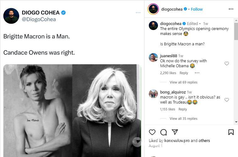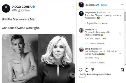 A francia elnöki pár nyáron pert indított Candace Owens amerikai politikai influenszer ellen, akinek Becoming Brigitte ("Brigitte-té válni) című videósorozatát több millióan nézték meg, és akinek felvételeit a perben megvádolt francia személyek is megosztották.