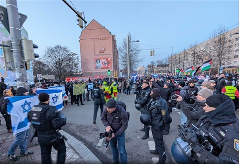 A palesztinbarátok szerettek volna a Die Linke tartományi képviselője, a zsidó Juliane Nagel irodája elé vonulni, de a rendőrség nem engedélyezte ezt az útvonalat, így el kellett térniük az eredeti tervüktől.