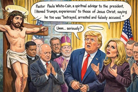 Paula White-Caine, a Fehér Ház hitügyekben illetékes vezető tanácsadója, Trump személyes spirituális vezetője ugyanis április elsején, az elnöki rezidencián megtartott húsvéti löncsön magához Jézus Krisztushoz hasonlította az elnököt, azt sugallva, hogy ő messiás, és nem áprilisi tréfának szánta.