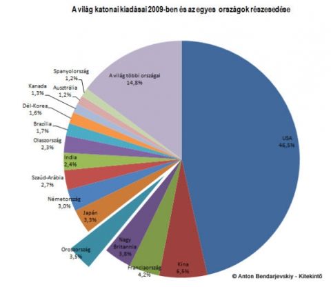 Az Egyesült Államokban a katonai kiadások a tavalyi GDP több mint 4,7%-át tették ki, Kínában a GDP 2%-át, Franciaországban 2,6%-át, Nagy Britanniában pedig 2,4%-át. Annak ellenére, hogy az Egyesült Államok többet költ katonai kiadásokra, mint az első ötös többi tagja együttvéve, jelzésértékű, hogy közülük mégis Oroszország számít az egyik legveszélyesebb államnak, legalábbis a 2010-es „Emberiség Globális Béke Indexe” szerint (GPI Index), amit 2007 óta minden évben összeállítanak, és amire a BBC is rendszeresen hivatkozik.