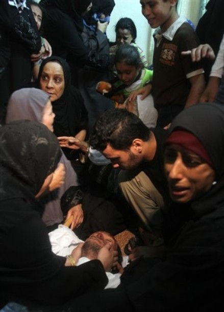 Halottak és sebesültek viszont voltak a határkerítés túlsó oldalán a palesztinok körében. Az izraeli állításnak ellentmond a Reuters hírügynökség videófölvétele, amelyen a Bét Hánún-i kórházba bevitt egyik halott egy aggastyán volt, aki nyilván nem indulhatott el fegyveresen, gránátokat lövöldözve az izraeli határ irányába... Palesztin források szerint a három halott egyetlen család tagjai voltak: A 93 éves Ibráhím Ábdalláh Ábú Ász'ád, a 17 éves unokája, Hoszám Háled Ábú Ász'ád és a 21 éves Iszmáíl Valíd Ábú Údá.