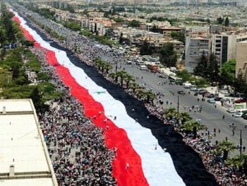 Úgyszintén, a nyugati média beszámolt ugyan a június 15-i, Damaszkusz sugárútja mentén tartott, kormány melletti demonstrációról, de bagatellizálta azt, dacára, pl. a 2.3 kilométeres szíriai zászlónak!