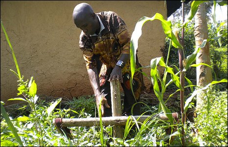 ![]() Joseph Ondieki, at the grave of his mother, who was burned as a witch |